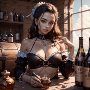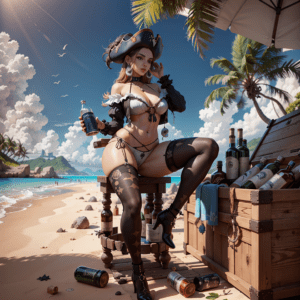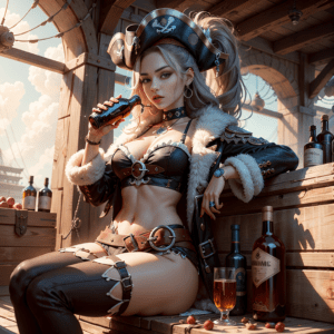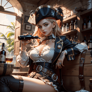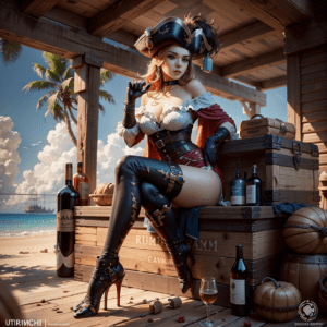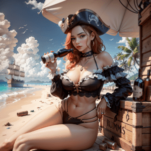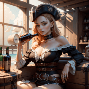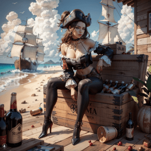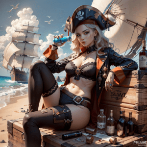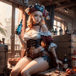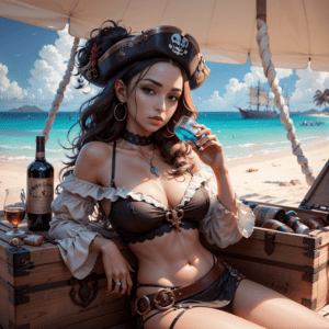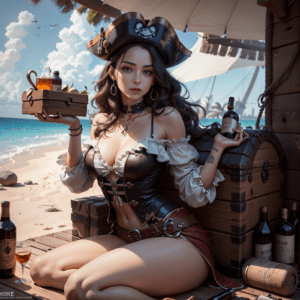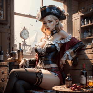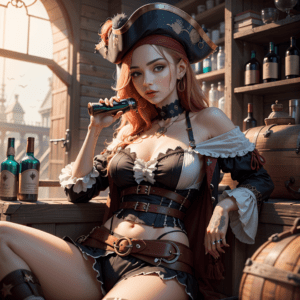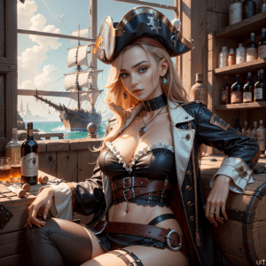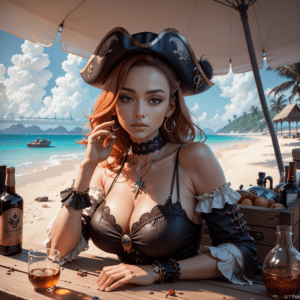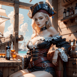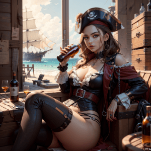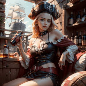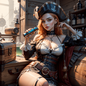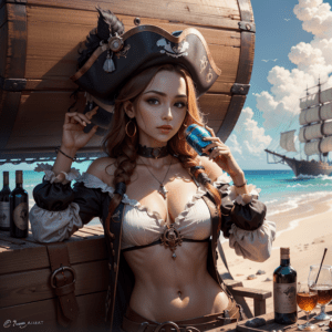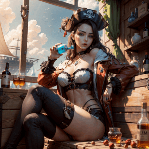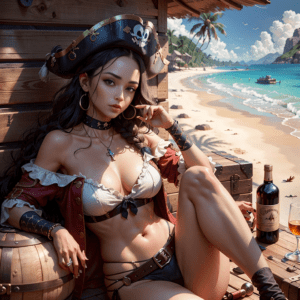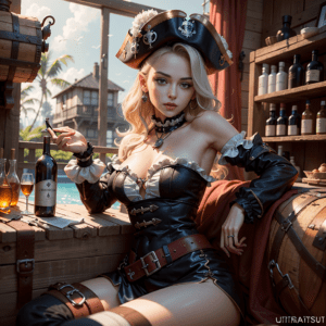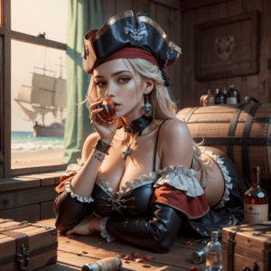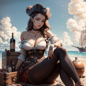 As the winds change and the tides shift, Isabella sails forth, the embodiment of the pirate’s spirit. Her life is an eternal adventure, where danger and desire intertwine, and where a beautiful woman reigns over the high seas, forever bound to the unpredictable allure of the pirate’s life.