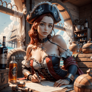 But beneath the fierce exterior lies a woman with a tender heart, a soul that yearns for more than the pirate’s life. In the quiet moments beneath a starlit sky, Isabella gazes into the vastness of the ocean, wondering what lies beyond the horizon. She dreams of a life where love and loyalty intertwine, where she can share her triumphs and sorrows with a kindred spirit.