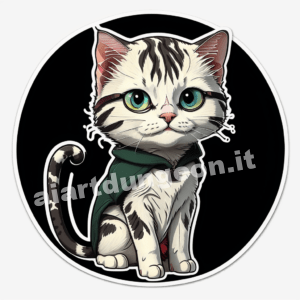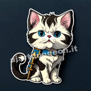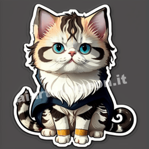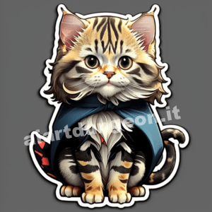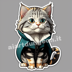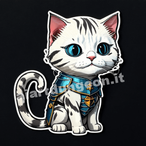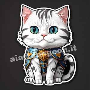 Iron Paws, the Warrior, was a muscular tabby with patches of white and brown fur. He had a miniature suit of armor, specially made, covering his strong little body. His intense amber eyes reflected a disciplined spirit and a fierce commitment to protect his companions.