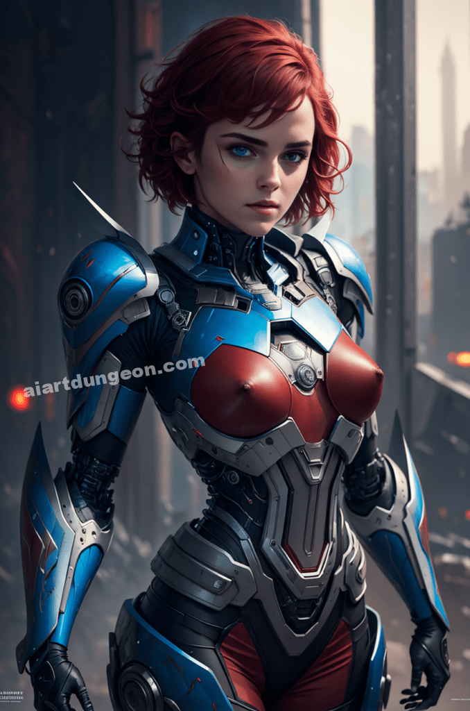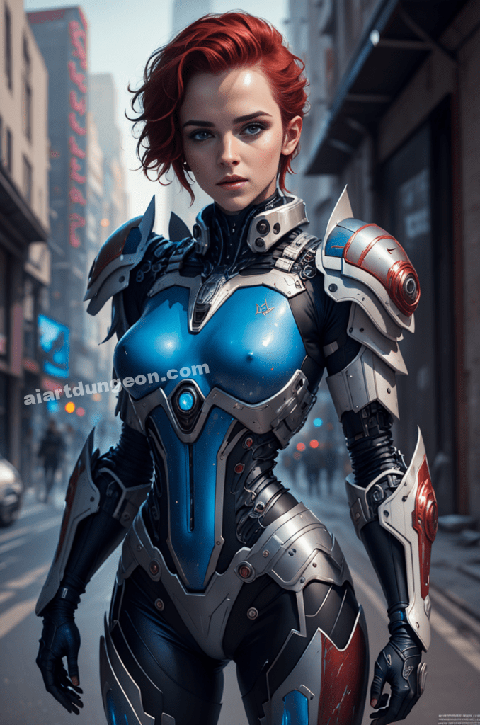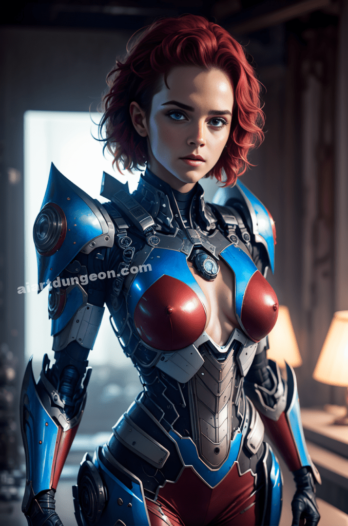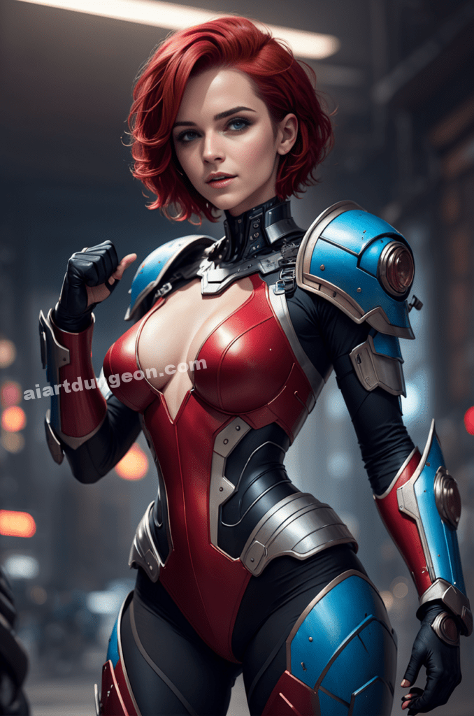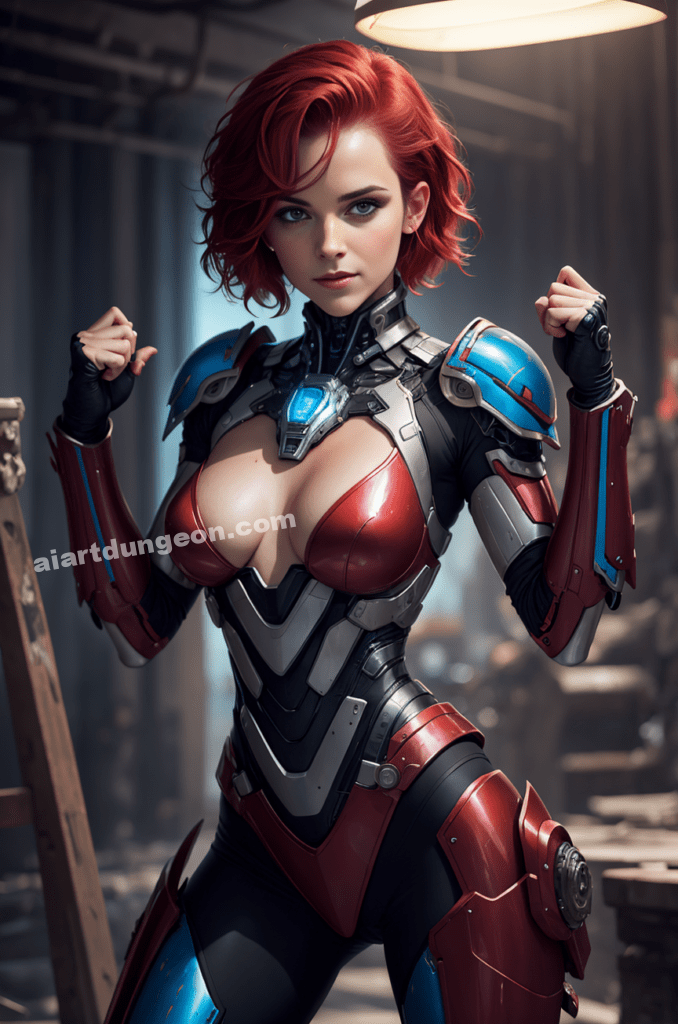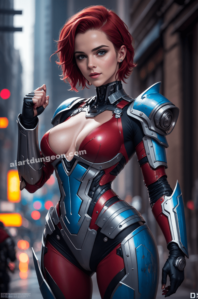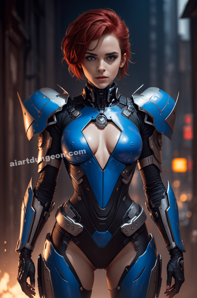 | Positive prompt:a 30 years old woman with (Blue eyes:1) and (short red hair:1.4), perfect boobs, beautiful woman , Masterpiece, absurdres, award winning photo, extremely detailed, amazing, fine detail, extremely detailed eyes and face, by lee jeffries nikon d850 film stock photograph 4 kodak 400 camera f1.6 lens rich colors hyper realistic lifelike texture dramatic lighting unrealengine trending on artstation cinestill 800 tungsten , bounty hunter, circuitpunk Exoskeleton armour pajamas digital, perfect eyes, detailed eyes, combat pose, anime, painting, artstation, concept art, smooth, sharp focus,art by ross tran and greg rutkowski and alphonse Mucha and Bak Karol, future cyberpunk city environment, neon <lyco:coloredSkinLoha_v219:1.0> futuristic mecha weapon, red armor, red color, <lora:qinghuaci3:0.3>, eyes on viewer, nsfw, naked, (pussy exposed:1.3) front view, hands up, fists, combat pose, evil smile Negative prompt: Negative prompt: bad-hands-5 bad-picture-chill-75v badhandv4 ng_deepnegative_v1_75t (1) verybadimagenegative_v1.3 , text, watermark, name, letter, deformed eyes, EasyNegative, fat, paintings, sketches, (worst quality:2), (low quality:2), (normal quality:2), lowres, ((monochrome)), ((grayscale)), bad anatomy, text, error, cropped, worst quality, low quality, normal quality, jpeg artifacts, signature, watermark, username, blurry, bad feet, poorly drawn face, bad proportions, gross proportions, ng_deepnegative_v1_75t, badhandsv5-neg, clothes, leather, asian, deformed fingers bad-hands-5 bad-picture-chill-75v badhandv4 By bad artist -neg ng_deepnegative_v1_75t (1) realisticvision-negative-embedding verybadimagenegative_v1.3 Settings: Steps: 30, Sampler: DPM++ 2M Karras, CFG scale: 7, Seed: 339521431, Face restoration: GFPGAN, Size: 512×768, Model hash: 1eb67dbd14, Model: painting_aZovyaRPGArtistTools_v2Offset, Denoising strength: 0.5, Clip skip: 2, Hires upscale: 1.7, Hires upscaler: R-ESRGAN 4x+ Anime6B, Lora hashes: “qinghuaci3: c4bf0bf360b8”, Version: v1.4.0 |