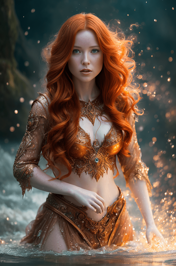 There are 36 Images in this gallery. - Prompt: Model: RPG Positive prompt: A violent explosion of light striking A REDHEAD mage girl surrounded in water as A dress cinematic shot on canon 5d ultra