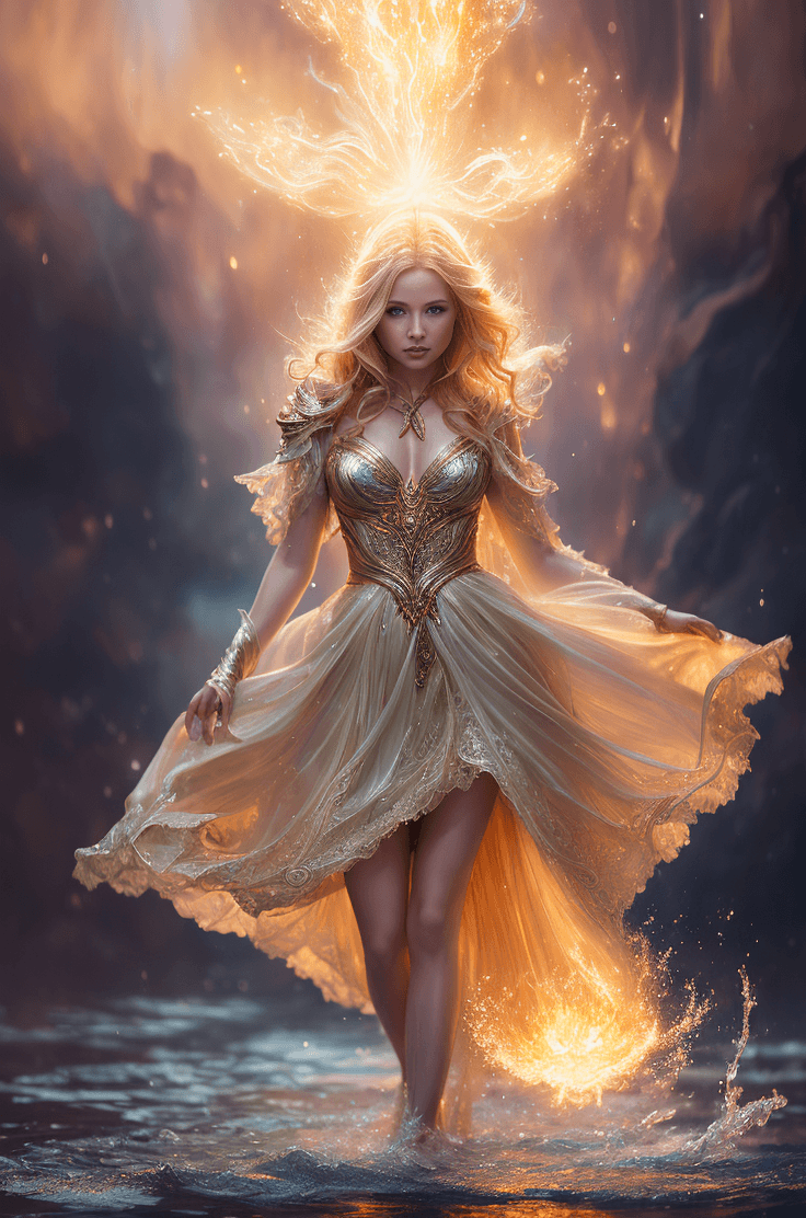 There are 27 Images in this gallery. - Prompt: Model: RPG Positive prompt: A violent explosion of light striking A BLONDE mage girl surrounded in water as A dress cinematic shot on canon 5d ultra