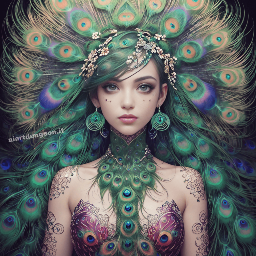 Female totem bird spirit, peacock, magpie, owl, eagle, bird of paradise