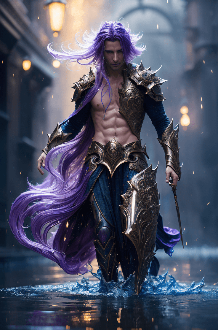 There are 14 Images in this gallery. - Prompt: Model: RPG Positive prompt: A violent explosion of light striking A purple hair mage 30 years old man surrounded in water as An armor cinematic shot