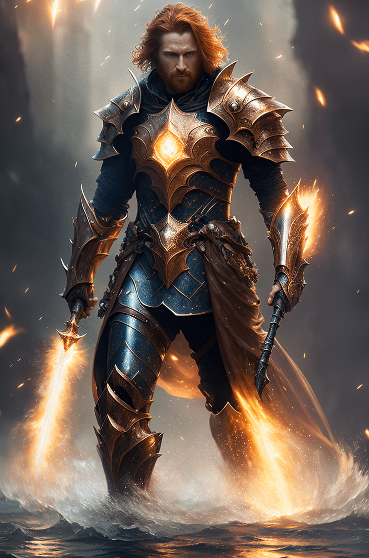 There are 15 Images in this gallery. - Prompt: Model: RPG Positive prompt: A violent explosion of light striking A REDHEAD mage 30 years old man surrounded in water as An armor cinematic shot on