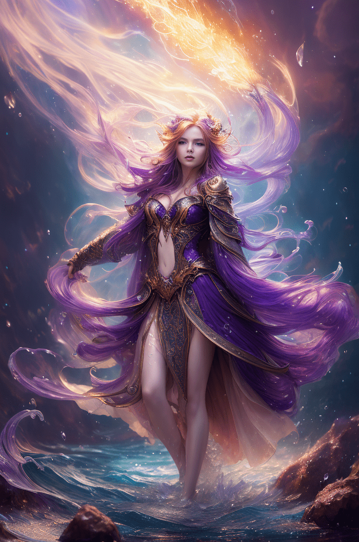 There are 31 Images in this gallery. - Prompt: Model: RPG Positive prompt: A violent explosion of light striking A purple hair mage girl surrounded in water as A dress cinematic shot on canon 5d