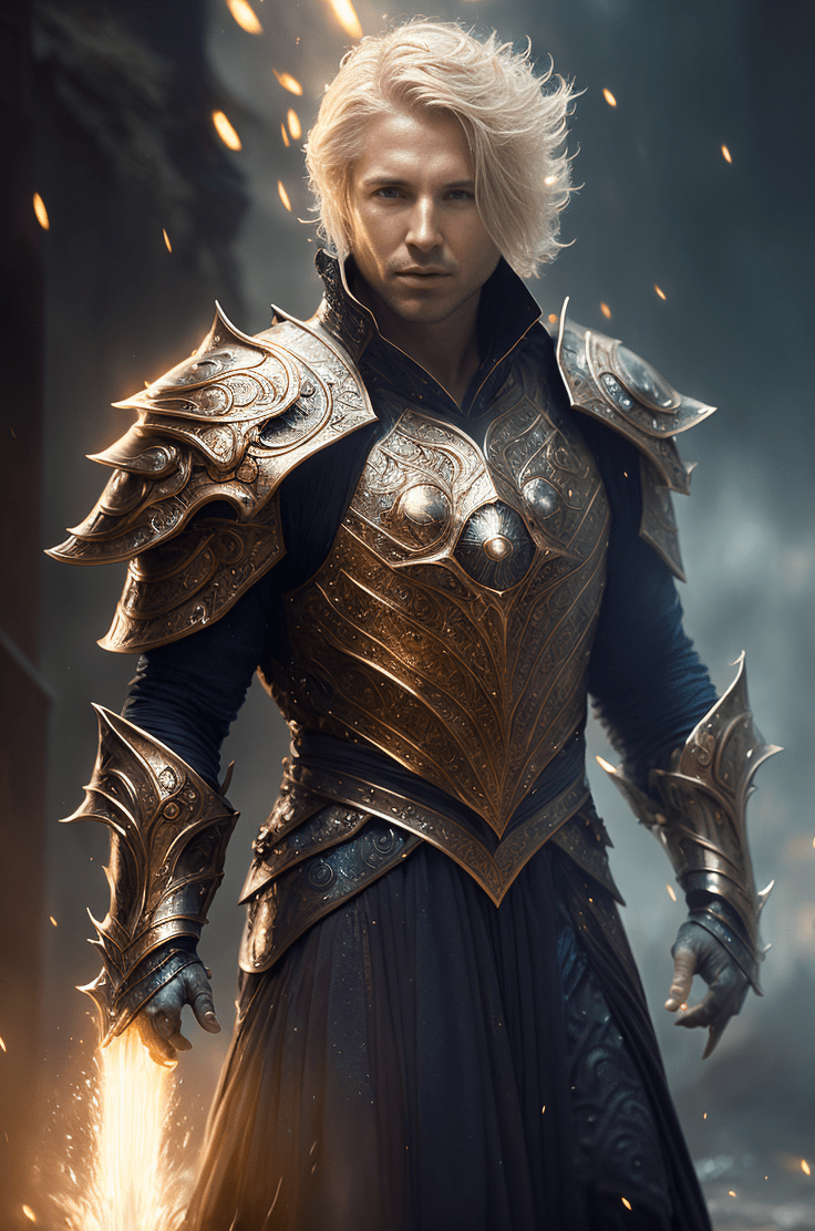There are 14 Images in this gallery. - Prompt: Model: RPG Positive prompt: A violent explosion of light striking A blonde mage 30 years old man surrounded in water as An armor cinematic shot on